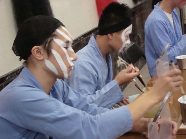 開演前に役者さんが顔を作っていく過程が見られるのが楽しいです。