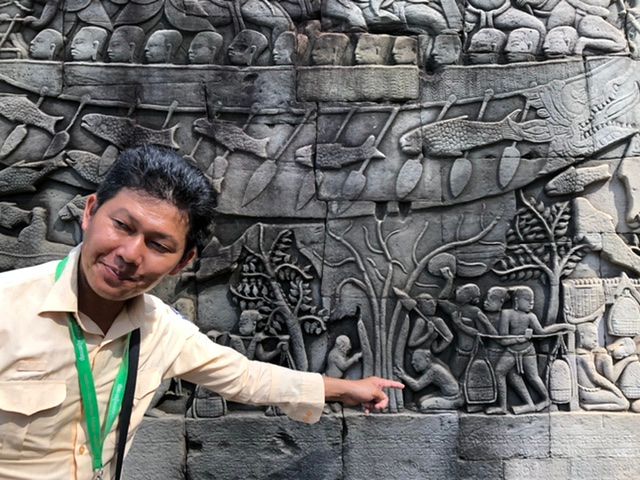 担当してくれた日本語ガイドのピトゥさん(ニックネーム石田さん)が最高!会った瞬間から流暢な日本語にジョークを交え、最後まで心のこもった案内をしてくれました。私達が見たいところはゆっくりと、見所を外さず、壁画に出てくるヒンドゥー教の神話やガンボジアの歴史、人々の暮らしについて等、何を聞いてもすべて丁寧に答えてくれました。