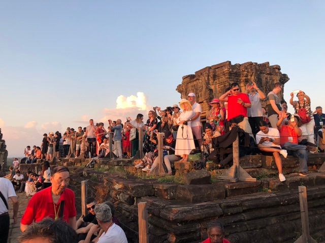 最後はプノンバケンで夕日を鑑賞しました。日が沈むと帰り道はあっという間に暗くなりましたが、石田さんはずっと私達の足元を照らしてくれました。