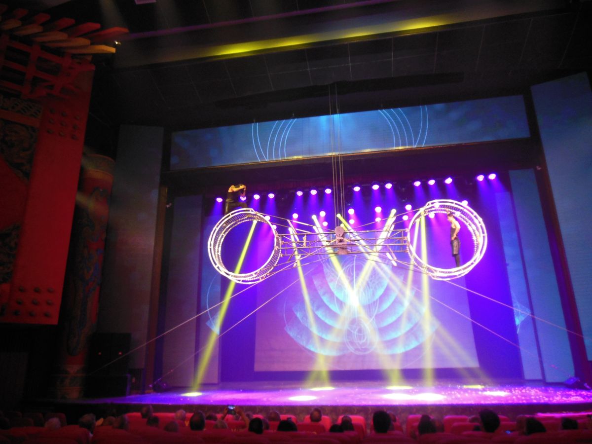 9月19日の北京空港は観光客でごった返していました。関空から飛行機で北京に降り立ち、飛行機は遅延することなく到着しましたが、入国審査を待つ人の行列が延々と続き、結局1時間半ほどかかって、入り口ゲートを抜けました。宿泊ホテルロビーで雑技団の朝暘劇場まで送ってくれるタクシーは待ち合わせの時間が40分ほど過ぎていたにもかかわらず、ちゃんと待っててくれました。それから朝暘劇場まで、開演時間のきっちり5分前に到着し、初めから鑑賞することができました。雑技団の演技はどれも素晴らしく、特に印象深かったのは鉄の丸い折の中に8台ものオートバイが入って回る演技で、ハラハラしました。最後にオートバイの人たちがヘルメットを取って挨拶されましたが、中に一人女性がいたので2度びっくりしました。感動しました。ありがとう!