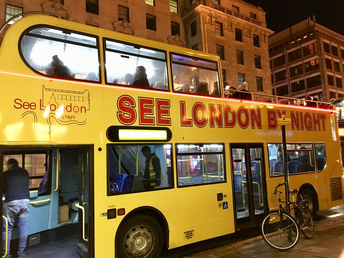 集合場所は大変わかりやすく、多くのツアーのバスが発着しています。多くの観光客がこのツアーに参加していて、集合時間になると計3台ものバスが到着しました。さすがに走り始めると風が冷たいので、マフラー、手袋、できればポケットに使い捨てカイロがあればいいです。クリスマス時期のロンドンはとても美しく、高い位置から見る街やイルミネーションに彩られた通りは最高です。私の参加したツアーには日本人はいませんでしたが困ることはありませんでした。ぜひ参加してみてください。