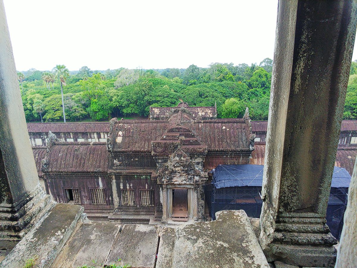 暑いです。歩きます。疲れが出てくる時間帯です。アンコールワットはすごかったです。ガイドの石田さんが参加者のスマホを借りて、360度パノラマ機能を使って面白い写真を撮ってくれました。こんな使い方が!と感動しました。いい写真です。