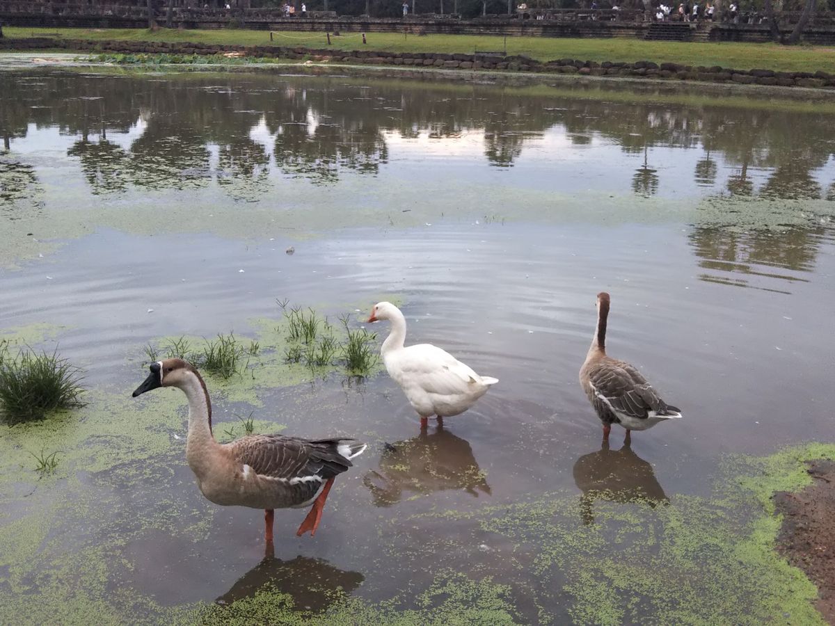 朝は4時半過ぎにお迎えで、アンコールワットの前に水面がある所で待機、猫や鴨もいました。残念ながら、朝日は曇りで見れませんでした。蟻に噛まれたので虫除けは必須です。