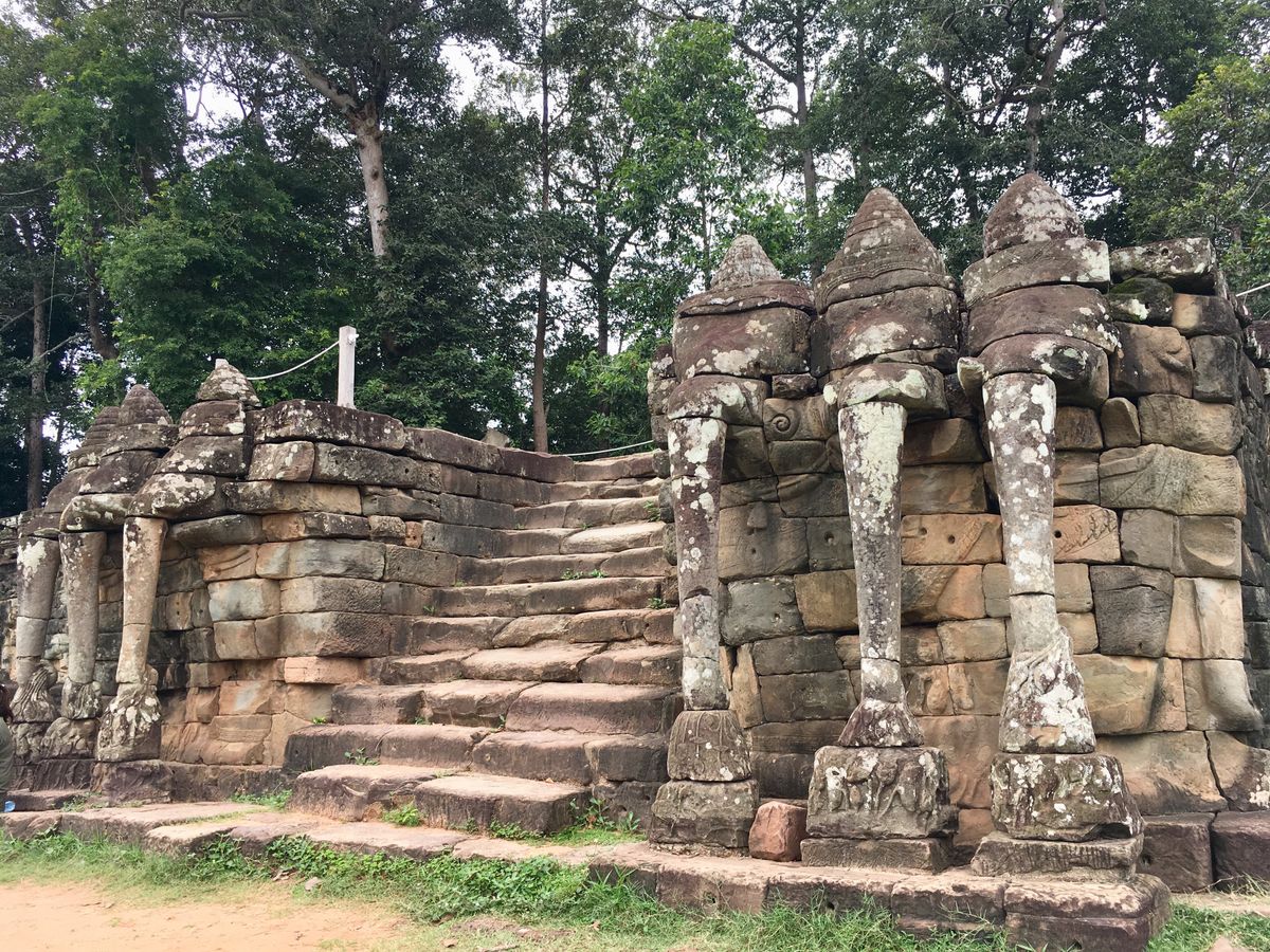 その後一端ホテルへ6時30分頃戻り、朝食を済ませたのち、8時頃に朝日鑑賞とは別のガイドさんが迎えに来てくれました。私たちが参加した時期はアンコールバルーンはメンテナンス中とのことで運休だったため、午前中アンコールトムとタプロームの観光でした。朝早くから日差しが強く暑かったのですが、ガイドの石田さん(NON STYLEの石田さんに似ているということで、このニックネームだとか)のユーモアあふれるガイドと分かりやすい日本語で楽しく過ごせました。