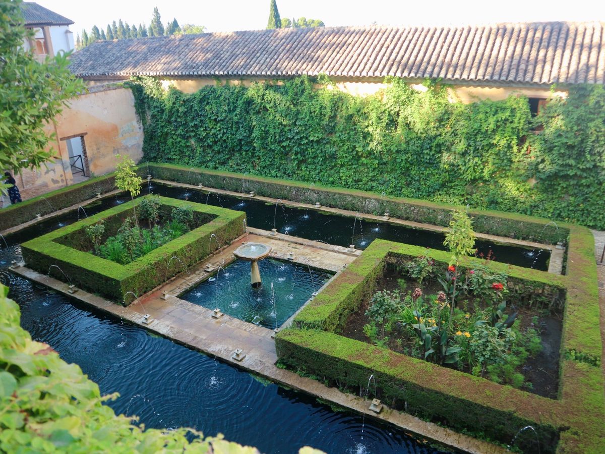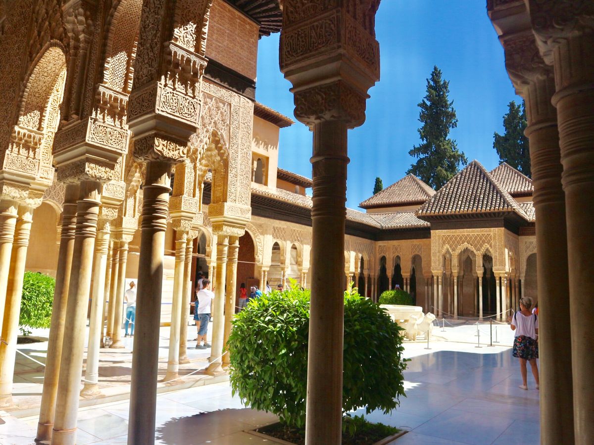 アルハンブラ宮殿は、庭園・宮殿・城塞などで成り立っていて、見どころにがたくさんあります。夏は40℃の厳しい日差しですが、日陰に入るとカラッとしていて涼しく感じます。