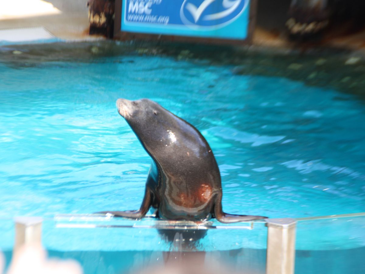 アザラシも飼育員の方とコミュニケーションをとりながら、ショーをしていただきました。