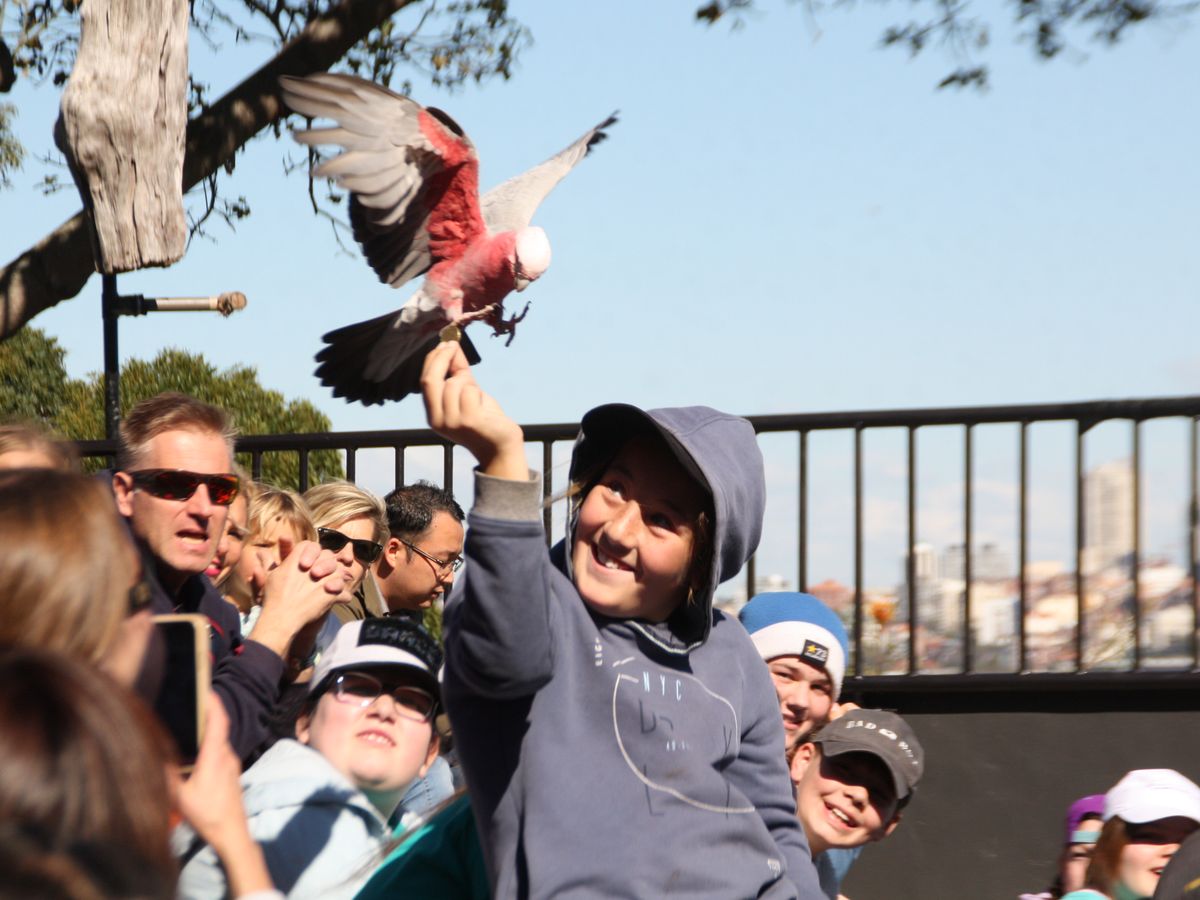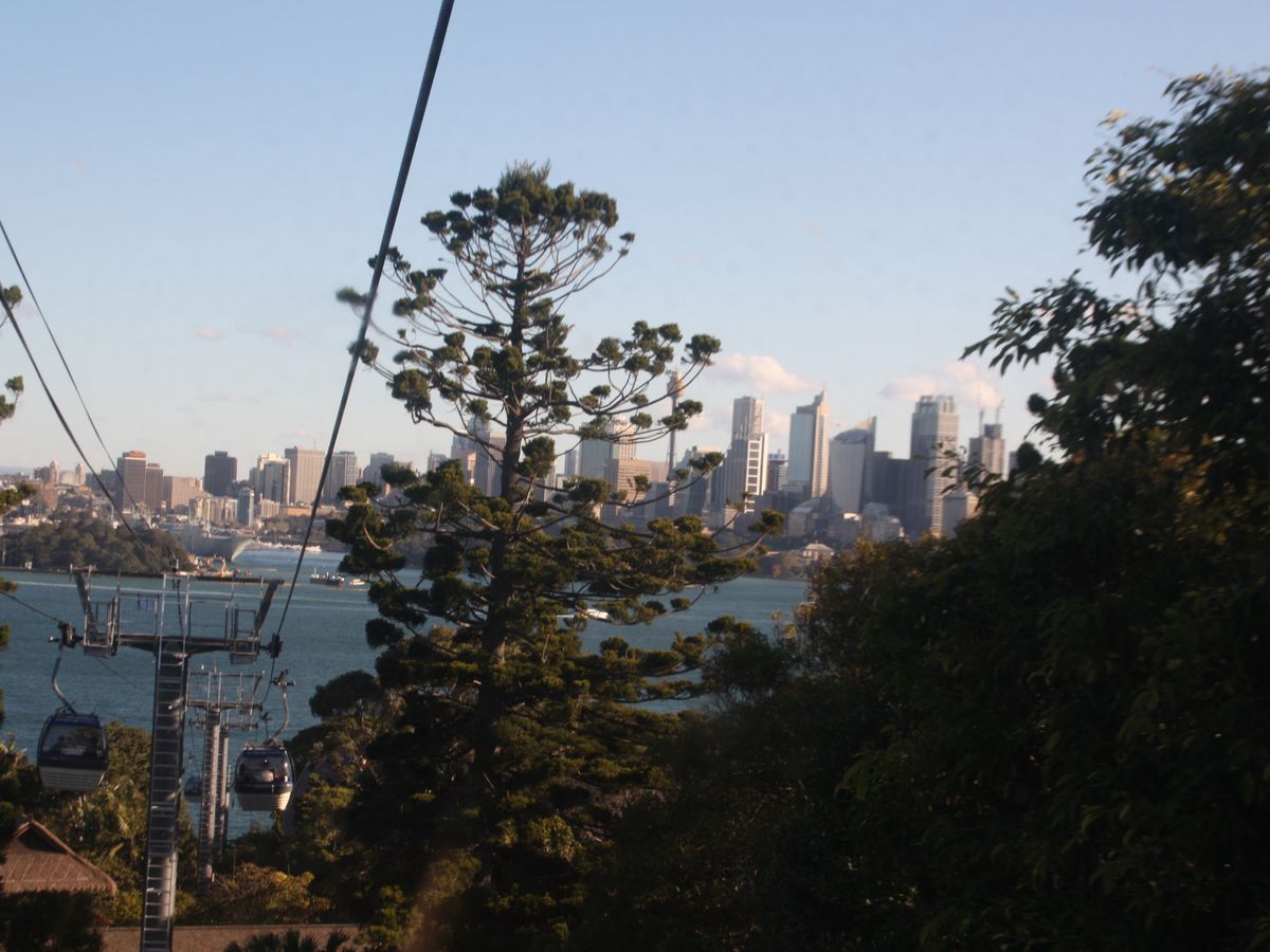 フェリーで、サーキュラシー港から船でタロンガ動物園に。船上から見るオペラハウスと陸地から見るオペラハウスは、顔が違ってよかったです。船で15分くらいで目的地に着きました。そこから入口へはスカイリフト(ゴンドラ)に乗って山を登るようでした。リフトから見る対岸の景色もきれいでした。入ってまずは何を見るか計画を立てました。鳥のショー(12時から)、アザラシのショー(2時から)をメインに園内を回りました。(無計画で行くと、歩き回っているだけで時間がたってしまいそうです。)