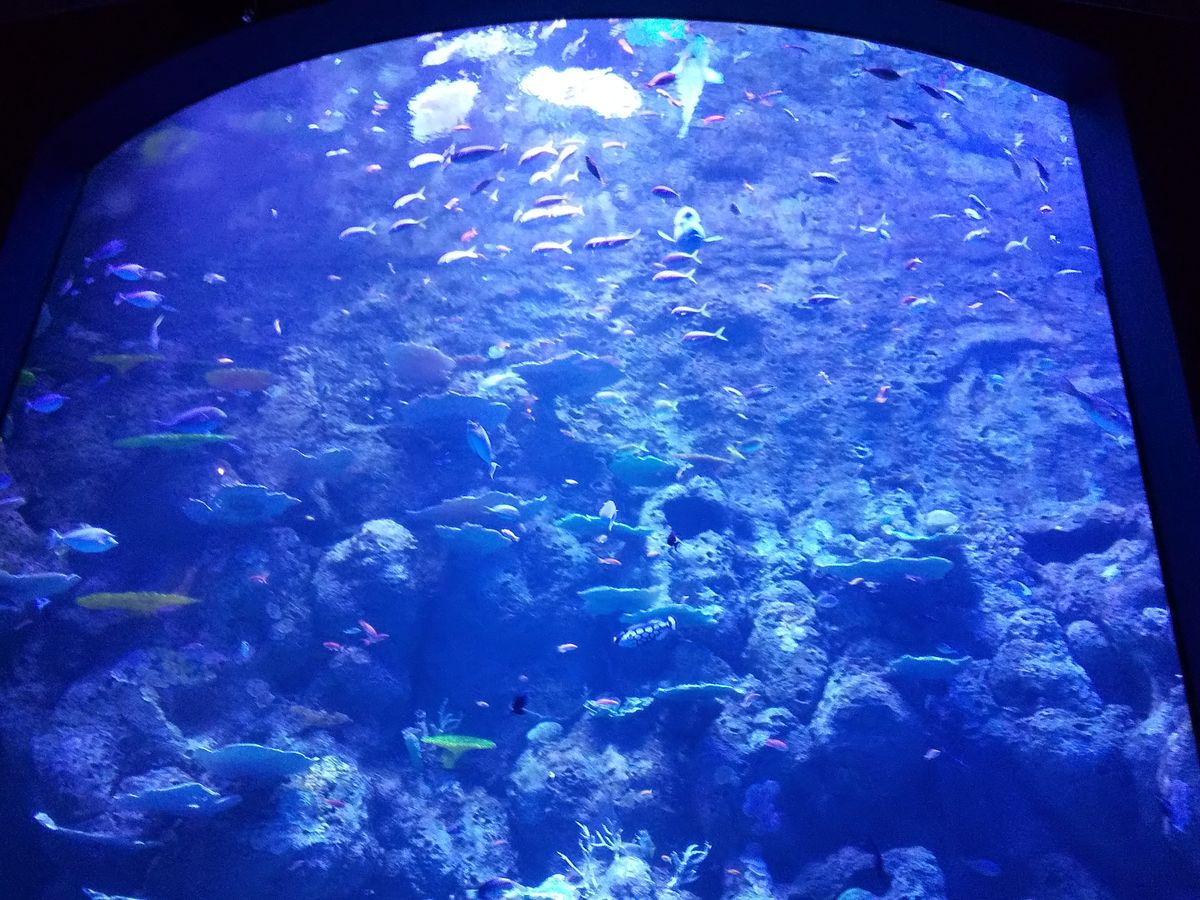 後半にあるサンゴ礁の水槽は、特にナポレオンフィッシュやカラフルな熱帯魚も多く、個人的には1番の見どころだと感じました。また、実は併設のレストランからも1個だけ水槽を見ることができ、軽く食事をしながら水槽を眺められるのもよかったです。