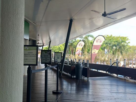 コアラズ&クリチャーズの受付は建物の外側です。朝一番のコースに行くと、受付時間前は入口が開いていないけど、時間過ぎまでくじけず待つとオープンされます。