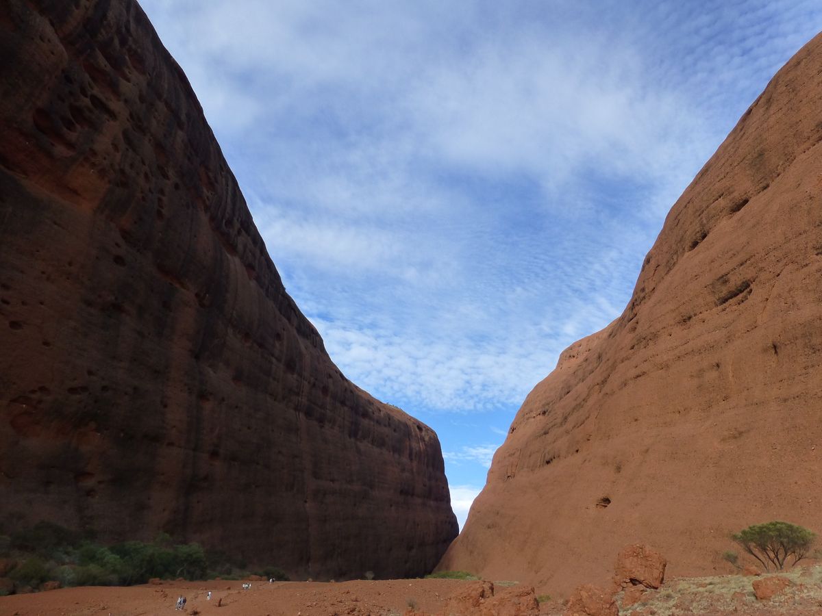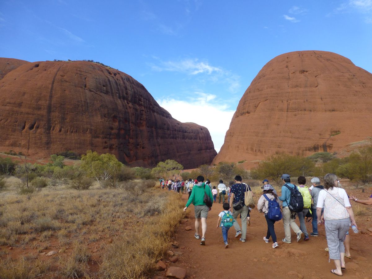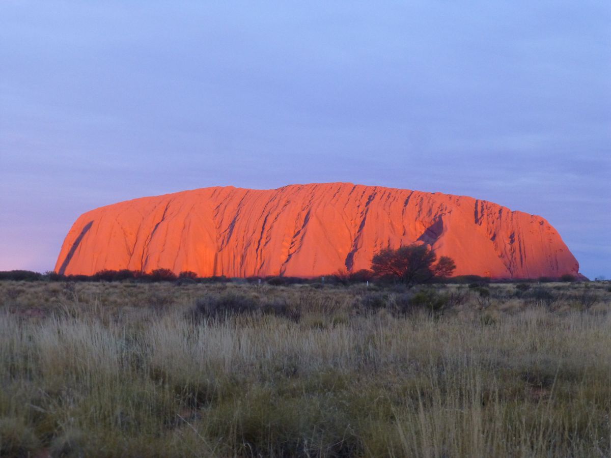 朝陽、夕陽に照らされたエアーズロックが色を変えていく様はとても幻想的で必見です。真紅に染まるのは、ごく僅かの時間帯なので、その瞬間を見逃しなく。特に夕暮れ時が素晴らしかったです。登頂できるかは運次第です。天気は良かったものの、強風のためゲート封鎖されましたが、帰路の飛行機の時間の直前にようやくゲートが開き、30分程度だけ途中まで辛うじて登頂できました。