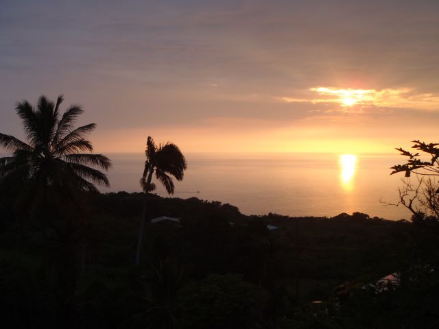 ゲストハウス周辺の自然と眺めは素晴らしく、太平洋に沈み行く夕日を見ながら庭のパパイヤ、パッションフルーツを食べ、南国気分を味わえます。