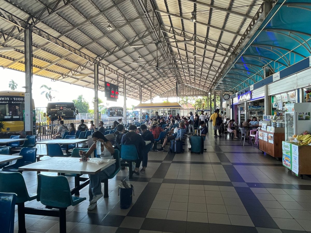 パタヤからバンコクまでの高速バスは頻繁に運行されていますが、どの便も混み合っていました。出発地のパタヤナースバスターミナルは街の外れにありますが、ローカル食堂や食べ物を売っているお店が幾つもあり、賑やかな雰囲気です。乗車したバンコク(エカマイ)行きのバスは旅行者や現地のタイ人でほぼ満席で、同じバスに日本人が10人くらい乗っていました。左右に2-2配列でシートが並ぶバスは割と快適で、楽しい雰囲気の中でスムーズにバンコクに移動することが出来ました。