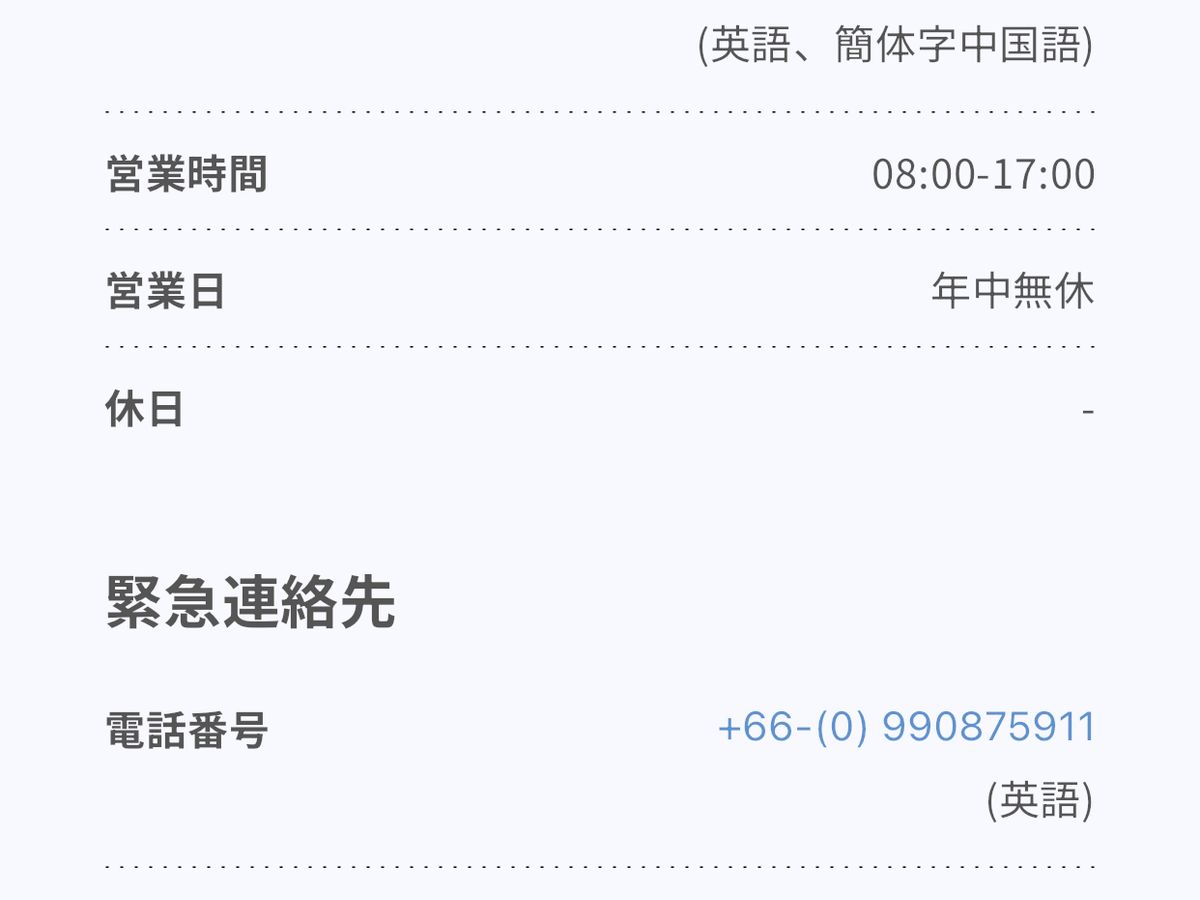 ホテルの方に手伝ってもらって、ホテルの方に業者を調べていただいて連絡してもらったが、記載の電話番号は一切通じず。