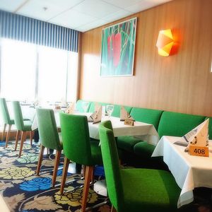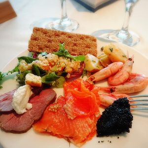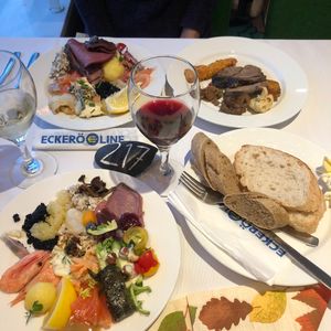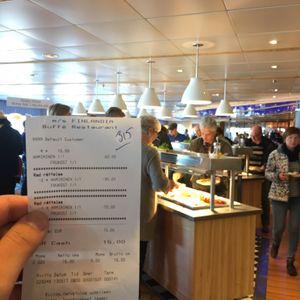 ヘルシンキ⇔タリンの帰りに利用しました。開店時間前に席を指定出来るので 混み合う船内でゆっくり過ごせます。ローストビーフ・キャビア&エビ&サーモン・サラダ・デザートとアルコールも含めた飲み食べ放題のビュッフェ、物価の高い北欧では格安です!