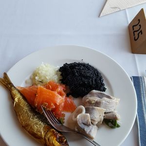 キャビアは乗せ放題でサーモンや生ハム、ローストビーフ、郷土料理と種類も多く是非船を利用される方はビュッフェ付きにした方がいいです^ ^