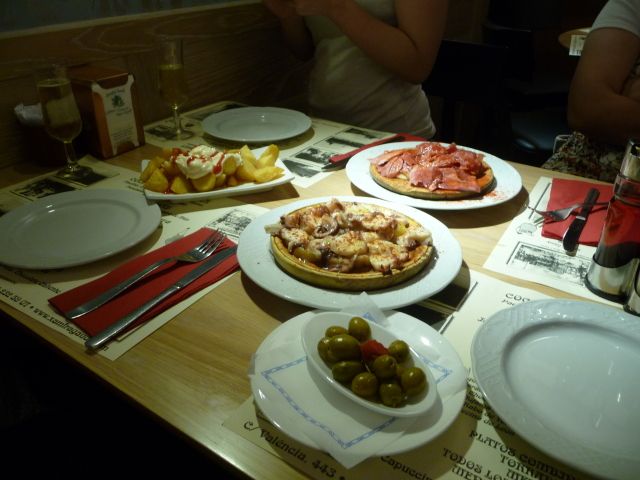 バルセロナ2日目の夜に参加しました。大聖堂から徒歩でバール、レストランの多い地区へ行きました。途中、ミサをしている教会にも立ち寄りました。ガルシア風、バスク風、カタルーニャ風の3つのバールに入りました。エビ、イベリコ豚、マッシュルームなど使った食事、カバ、サングリア、ビールをとても美味しく頂きました。ガイドさんは、在20数年の食通の方で、お酒、料理の楽しい話を聞けました。その後のスペインでの食事にとても役立ちました。