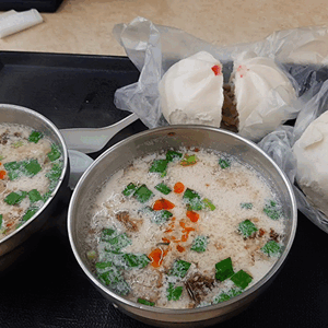 早速いくつか朝ご飯のお店を案内してくれ、自分たちで行きたい店を決める、と言うシステムでした。豆將、水餃子、お粥、サンドイッチ、モツスープ、ごはんとおかず、おにぎり・・などなど。私たちは台湾と言えば、ということで豆將のお店にしました。メニュー表には日本語も書いてあるのですが、「甘い豆乳」「塩辛い豆乳」というニュアンスが伝わってこない日本語だったので、ガイドさんにたずねて希望のものを注文することが出来ました。私たちが食事している間は、ガイドさんも何かを買って外で待っていてくれました。