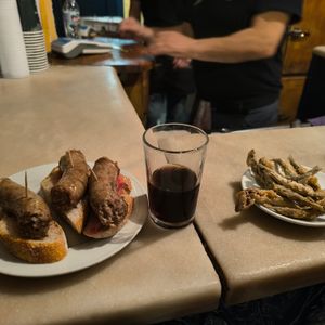 バルには3軒行きますが、普通にピンチョスを選べるお店のみならず、なかなか注文しにくいお店も紹介してもらえます。写真はその1軒。飲み物はベルムート。お店のメニューにもなかなか出てこないのですが、今流行りとの事で飲んでみました。 3軒行きますから、いろいろなものを少しずつ食べたり、いろいろな飲み物に挑戦できます。 バル巡りの途中は旧市街の見どころをしっかり案内してもらえますし、在住者ならではの効率良い動き方で時間の無駄もありません。当日はイベントが有ったのでそちらにも連れて行っていただきました。とても良いツアーです。