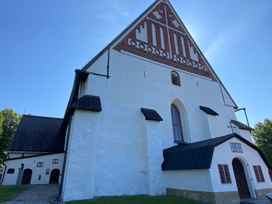 ガイドさんと共にカンピのバスターミナルから座席指定の2階建てバスでポルヴォーまで楽々移動。ポルヴォーの街はあまり大きくないが、バス停で降りて、カラフルな船着き場を眺めることのできる高台まで行くにはガイドさんがいないと難しい。高台から川沿いに降りるまでの林にはブルーベリーや野いちごが実っており、これを採って食べることができたのもガイドさんのおかげ。自分たちだけだとポルヴォー大聖堂から旧市庁舎とその周辺のたくさんのショップを効率的に回ることはできない。ガイドブックに出ている有名なチョコレート屋さんで試食をしながらチョコレートを購入。ポルヴォーの街並みを描いたプリントも購入。