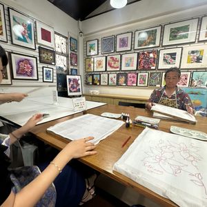女性陣について来た感じの主人でしたが、思いの外1番楽しんだのは主人でした。ピューターの小皿作りもバティックの臈纈染も本当に楽しい体験でした。昼食処も美味しかったです。