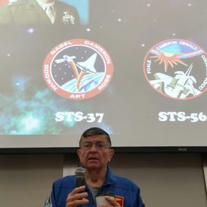 当日は集合場所のホテルに自力で移動し、30人ほどが一緒に大型バスで移動しました。乗車時に入場チケットと、Chat With An Astronautのチケット2枚を受け取ります。