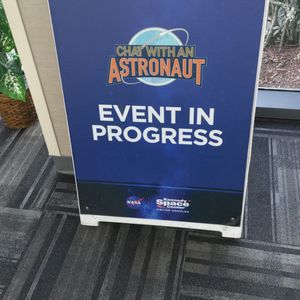 現地でいったん解散し、自由行動になります。参加した回のChat With An Astronautの時間は14:00でした。チケットに印字された時間に会場に移動。15分前から入場可能で、会場は立て看板が出ていました。