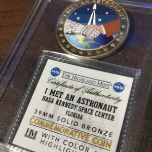 会場では軽食とフリードリンク。8人ほどの円卓が5卓ほどありました。当日参加されたKenneth D Cameron さんのサイン入りポートレート(6つ切りサイズ程度)と、参加記念のメダルがお土産につきます。当日の参加人数は40人ほどで、会話したい方は挙手する方式でした。私は挙手しなかったので質問の機会がありませんでしたが、そもそも英語力に自信がなかったため、会話必須でないのは逆に良かったという感想です。