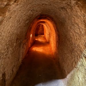 クチトンネルは屈んだまま薄暗い道を進まなければなりません。私は50m進みましたが、途中で25mで離脱することもできます。