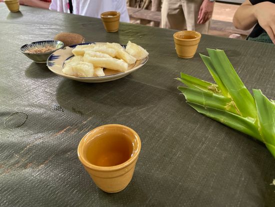 メコンデルタでは蜂蜜金柑、バナナチップス、ドライジンジャー、ココナッツキャンディー、現地のフルーツ5種類の試食があります。フルーツ以外は全てセールスがあり土産物を購入するよう勧められました。フルーツを食べている最中には、隣で突然歌が始まります。歌い終わると近づいてきてチップを入れるよう籠を渡されました。額も高くはないし、海外の文化だと思い受け入れましたが驚きました。
