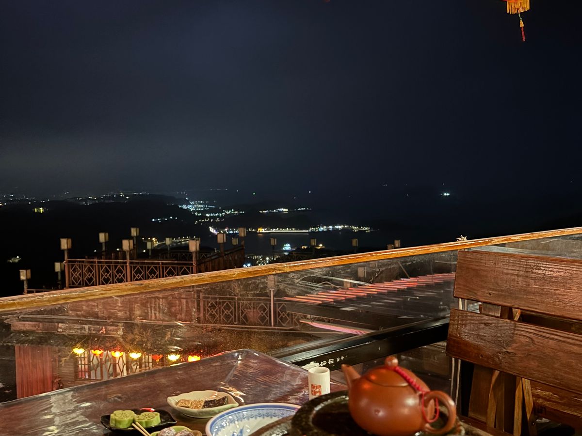九份では阿妹茶棲にどうしても行きたかったのですが、ガイドの丁さんがコツ等色々と教えてくださり、奇跡的にとても眺めの良いテラス席に座ることができました!