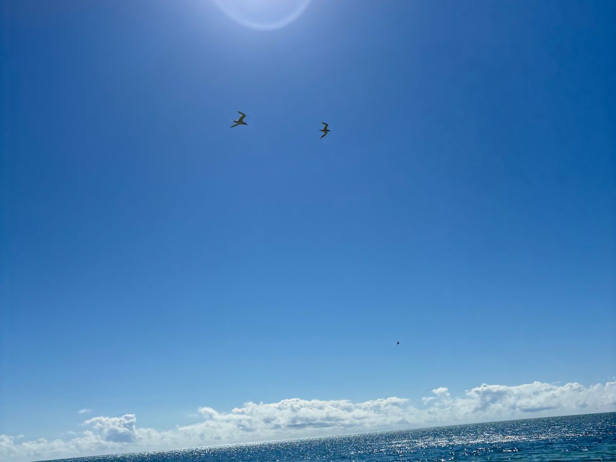 そんな中の船出でしたが、ドーナツをもらって、陽気なスタッフの生演奏とともにサンドバーに近づいていくと、お天気も少し回復。