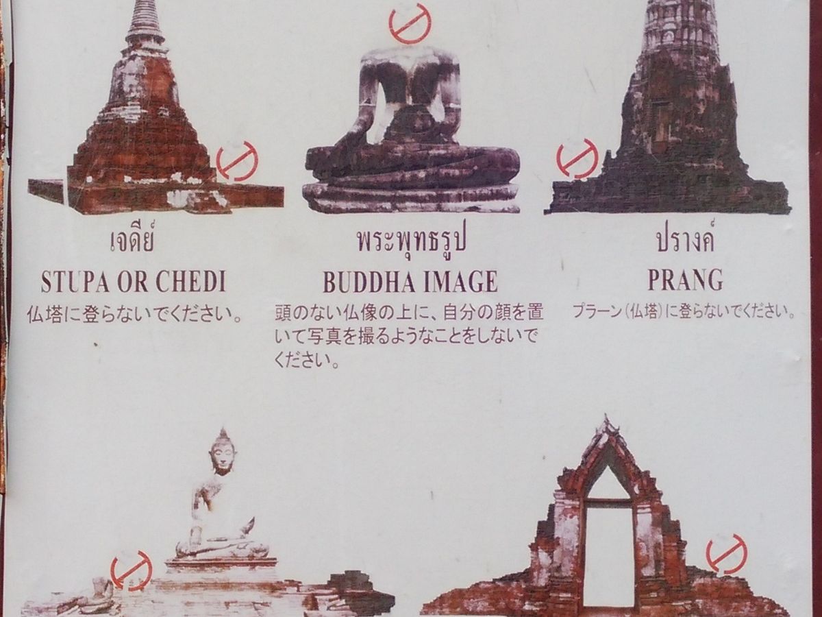 ➁ガイドさんは「写真、撮りますか?」と言ってきてくれます。撮ってもらいます。すると私のスマホを見て、「これはシャープ製か?タイではソニーが・・・・」と延々、スマホの話を始めました。私は目の前のアユタヤの遺跡を邪魔されずに見たいのですが・・・・