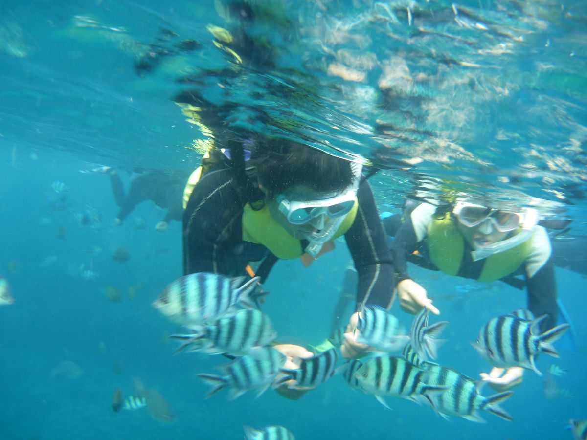 波が強く泳ぎが苦手でも、浮き輪に掴まっていればインストラクターの方が引っ張ってくれるので安心して身を任せられました。かわいい魚たちがたくさん寄ってきてくれた餌付けは、いい思い出になりました。