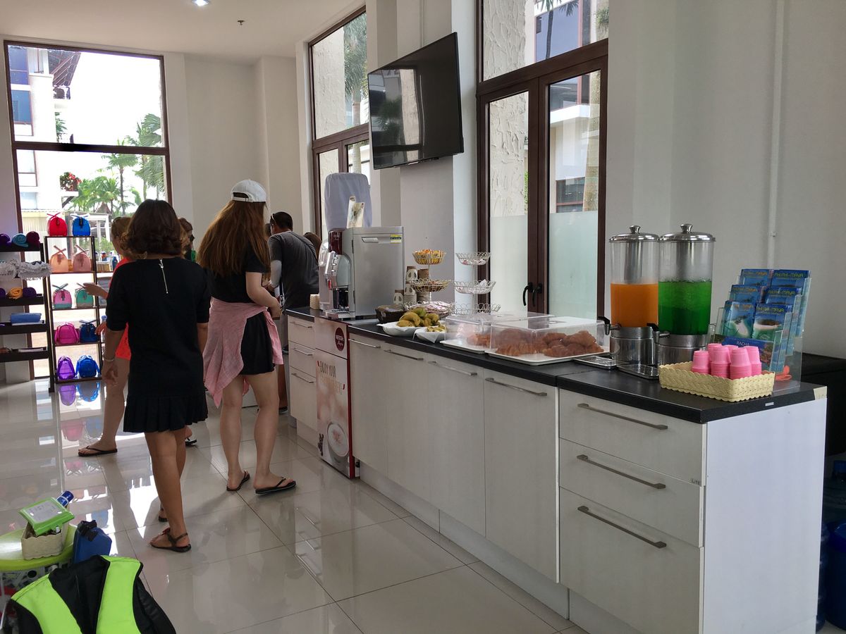マリーナ内にはソフトドリンク、コーヒー、クロワッサンやバナナなどの軽食が無料で提供されています!また、ケータイの防水ケースや、サングラス、日焼け止めなども販売されているので安心ですよ!ちなみに防水ケースを購入!THB300-400だったと思います。別館にはトイレやお土産屋さんもありました。