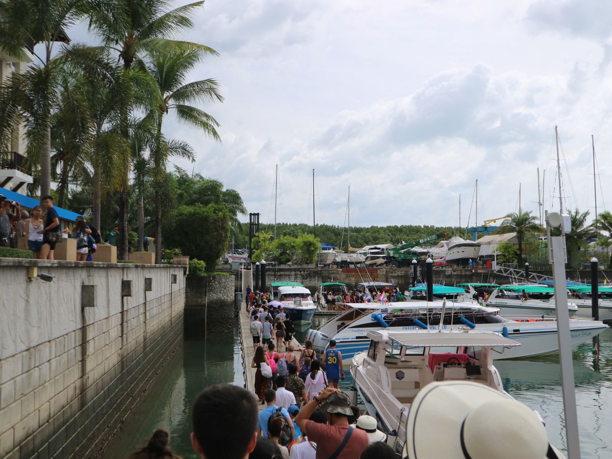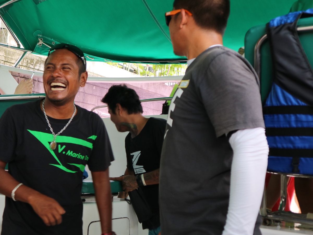 ボートに乗り込む前に、各言語で説明がありました。日本語でもかなり丁寧に説明してくれるので、本当に安心です。この日の日本語担当は、マックさん!楽しくて丁寧な方!独学で日本語、韓国語、英語を勉強されたそうです。。すごい。。ボートは揺れが強いので、酔い止めも無料で頂けます。乗船後も貰えるので安心です。通常のシュノーケルセットは含まれますが、フィンや、女性の方で化粧都合で完全にフルフェイスのシュノーケル?は別料金だそうです!また旅の写真や動画を残したい方は、go proで撮影してもらえるようです。THB1500位かな?
