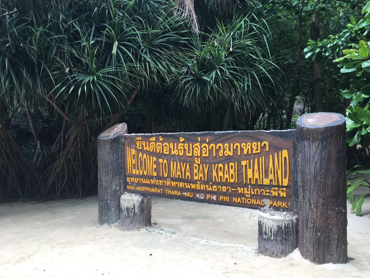 マヤベイの看板の前でもばっちり写真撮りました!