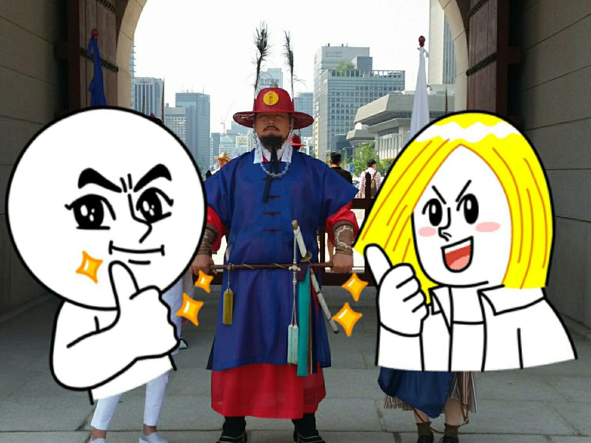 景福宮での交代式の直後は、突然「行きますよ~」とダッシュされて、訳がわからず一緒に走ったのですが(笑)、式に出ていた式典衣装の方と一緒に撮影ができるポイントに走ってくれて、おかげで並ばすに撮影してもらうことができました。説明もわかりやすく、親切でガイドさんには大満足でした。