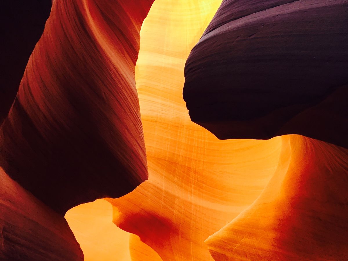 アンテロープキャニオンはテレビで見たまま。IPhonでもきれいに撮れる写真に感動、撮り方、設定も教えてもらい満足行く写真が撮れました。