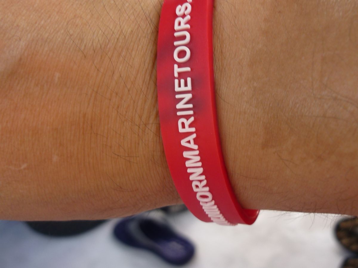 ・港に到着:受付で名前とホテルをチェックされて、色違いのリストバンドを渡される。