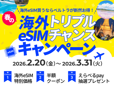 春の海外eSIMトリプルチャンスキャンペーン | 観光・オプショナルツアー専門 VELTRA(ベルトラ)