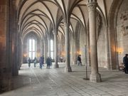 バスでの移動距離が長いので心配ではありましたが車内は快適かつガイドの高橋さんのお陰で素晴らしい1日となりました。知識の宝庫!ともいえる高橋さんのお話を聞いた後でのモンサンミッシェル見学は更に感動し有り難かったです。混雑もしてなかったので昼食は島内のレストランに入りお肉料理を頂きました。雨も降ってきたので一息つけてよかったです。モンサンミッシェル、素晴らしい体験でした。マイバスの方に感謝!
