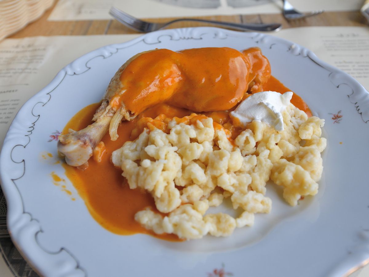 という事で、トイレ休憩も無くバスは3時間走り続けて、ハンガリー国境を越えてブダペストに近づいてくると、昼食予約の希望を1、チキンか2、ベジタリアンのメニューで聞いていたので、チキンの希望を入れておきました。