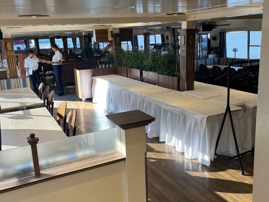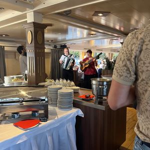 乗り場が分かりにくかったですが、乗船してから楽しく過ごせました。バイキングのお料理は充分ありました。演奏は、ボーカルとアコーディオンの二人。地元のポピュラーソングが主で、雰囲気を味わうことが出来ました。参加者は、観光客地元民が半々ぐらいで日本人は居ませんでした。
