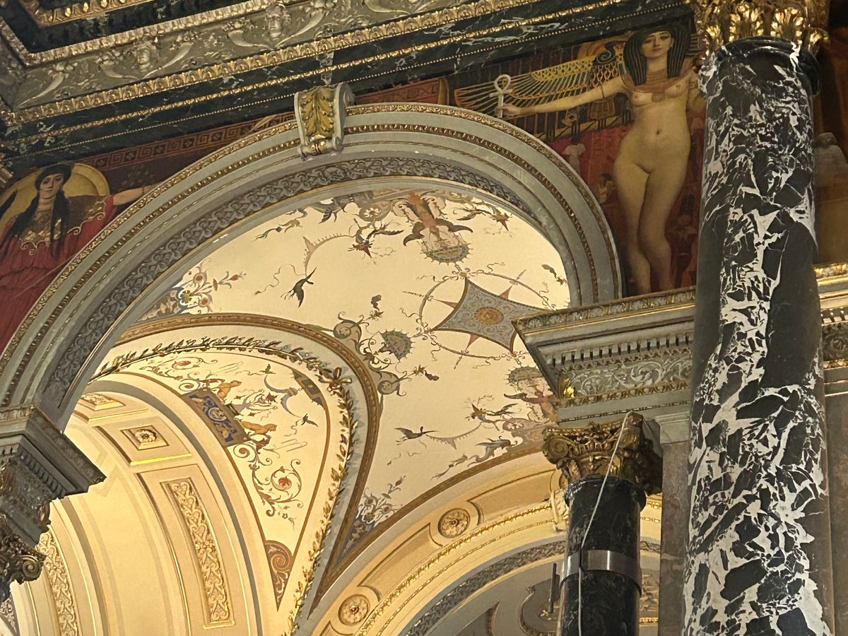 階段上のクリムトがよく見えるよう、足場がかけられていて、至近で見ることが出来たのも収穫でした。「Stairway to Klimt」といって9月初旬までだそうです。