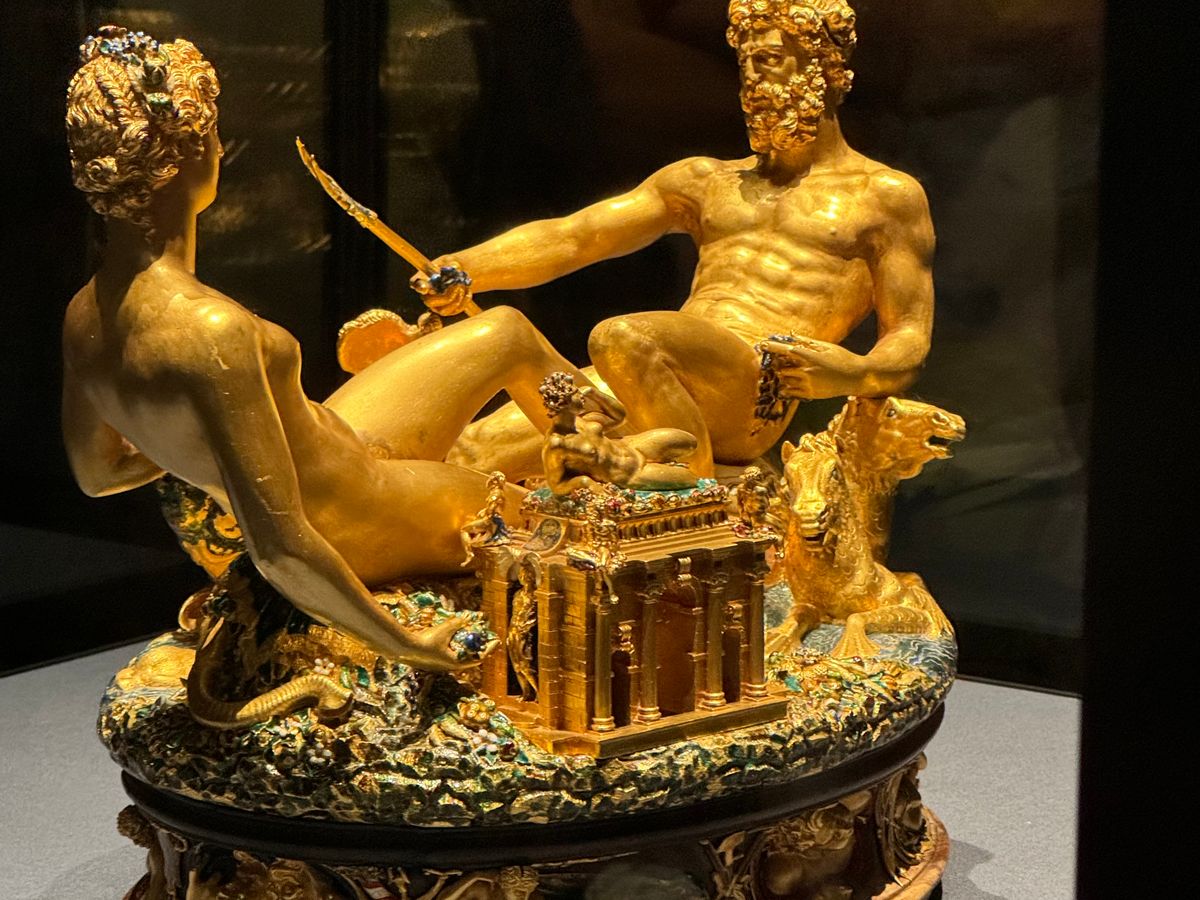 いつもは2階の絵画エリアをメインに案内しているとのことですが、せっかくなので色々見たいと伝えると、1階の工芸品エリアもガイドしていただけました。美術史博物館、というと絵画のイメージでしたが、王家の財を尽くした調度品は必見です。