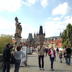 ベテランガイドさんの案内で、観光客で溢れた道を突き進んで移動しました。どの場所も沢山の人で賑わっています。橋を渡るときはスリに気をつけたほうが良いかと思います。ガイドさんを見失わないように、カメラ撮影時は周りを見ておいたほうが良いです。ガイドさんには、目立つ旗や傘などを持って案内して頂きたいのと、トイレ休憩の時間配分が欲しかったです。トイレの場所が目立たず、トイレがある場所を示したマップがあれば助かります。現地に着くまでに、バスでトイレへ行くことを勧めます。