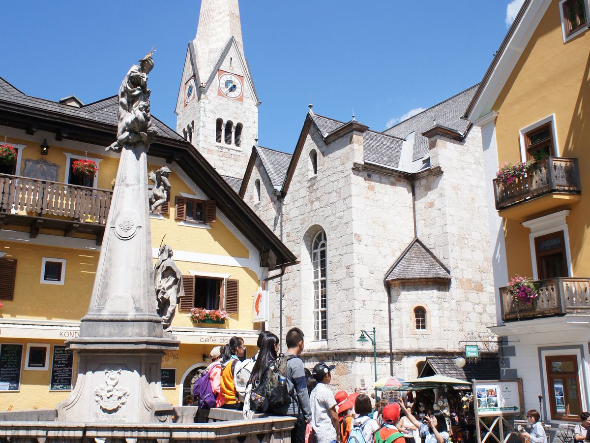 ハルシュタットは少し坂道があり雨で濡れた石畳は滑りやすいのでご注意ください。