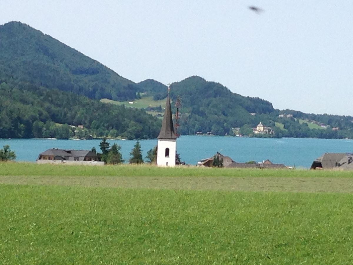 ヴォルフガング湖をみわたす場所で食事。(ハルシュタットにはあと40分。ハルシュタットでは田舎のものが食べられないからと、この場所をリコメンドされる)