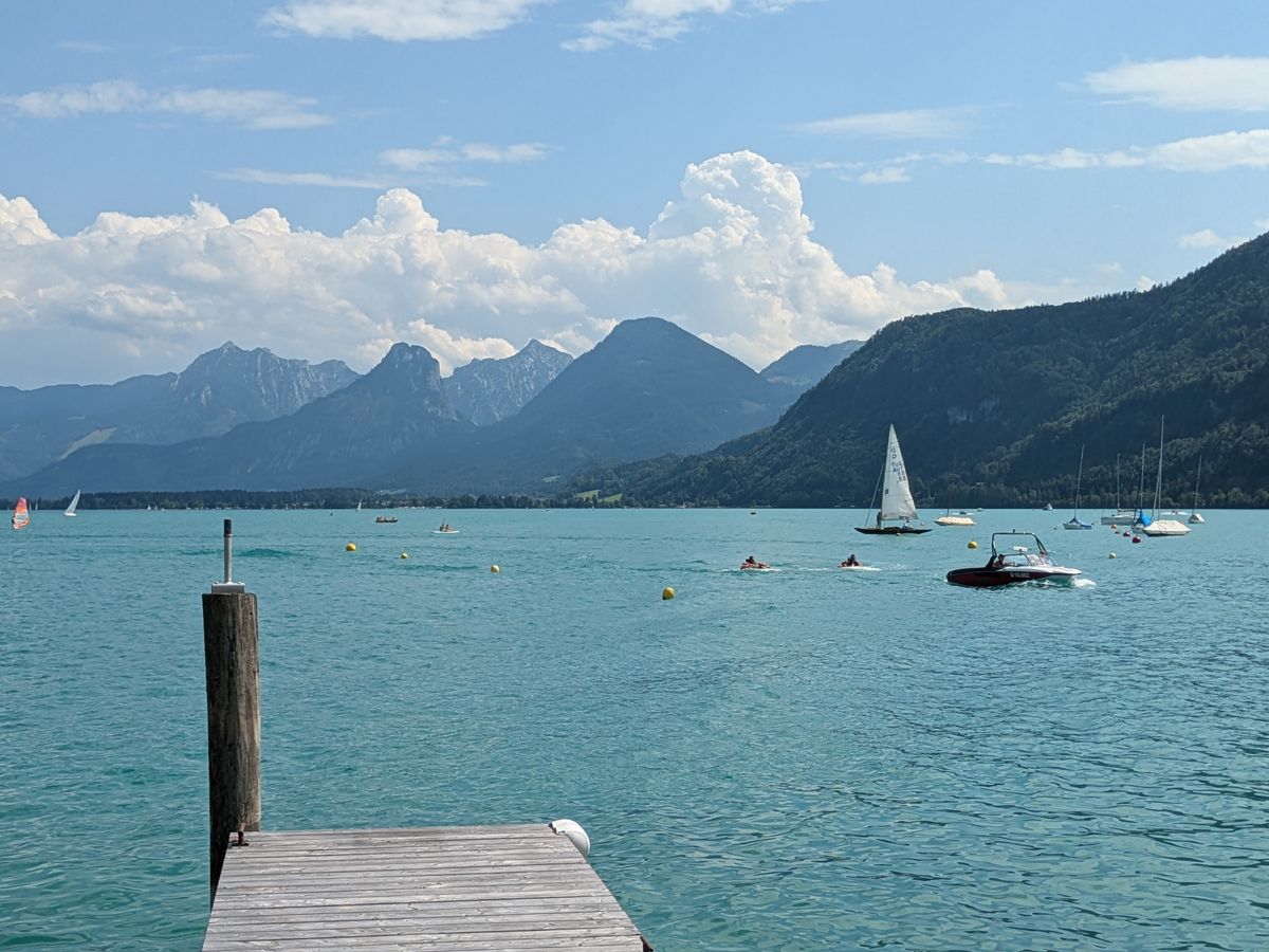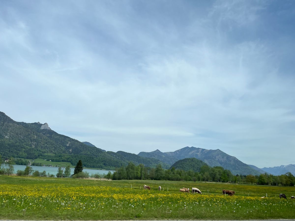 その後は、楽しみにしていたヴォルフガング湖での写真ストップですが、残念ながら道中のパーキングは車がいっぱいで止められず、車窓からのみとなってしまいました。反対側に景観があったため、よく見えずにこの点だけ残念でした。ちょうど祝日とも重なり、混雑していた日だったのかもしれません。