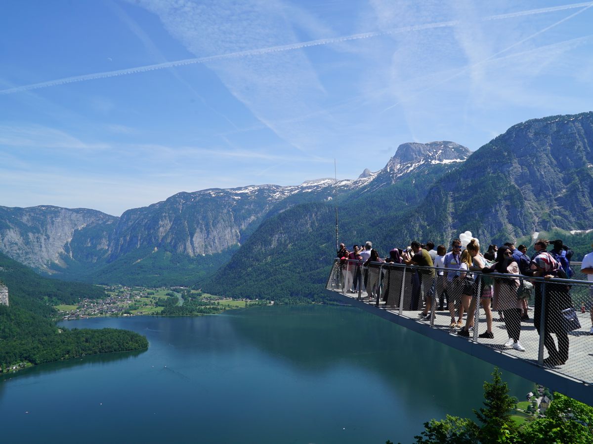 ガイドさんが親切で、車中様々な解説をしてくれて良かった。(英語はやや聴き難かったが)往路は、「ヴォルフガング湖」を望む丘で休憩と写真タイムがあり、この景色も良かった。ハルシュタットは観光シーズンで、観光客が多く2時間半の自由時間では足りなかった。ケーブルカーはガイドさんが纏めて切符を買ってくれて団体扱いで安くなったが、人が多く待ち時間が長かった。帰りのケーブルカーも同様に待ち時間を多く取られた。又、展望台のスカイウォークも写真を撮る人で大渋滞していた。結局大急ぎでの観光となりゆっくりしている時間はなかった。復路は往路とは異なり、「ダッハシュタイン山」やオーストリア・アルプスを見ながらとなり、これも大変良かった。大変充実した観光でとても良かった。